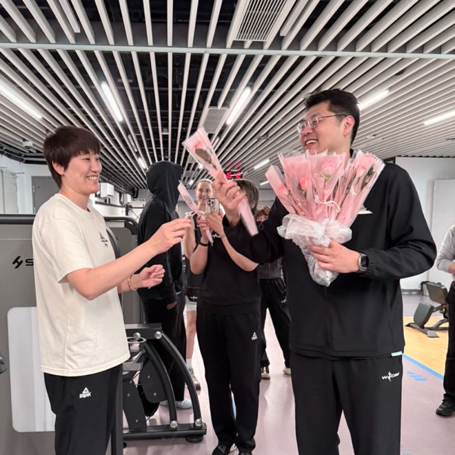 李指导深知姑娘们训练的艰辛,他亲手为每一位教练员和队员送上鲜花,感谢她们日复一日的刻苦训练、奋勇拼搏,祝福每一位女篮姑娘女神节快乐,愿她们在赛场绽放锋芒,在生活里自带光芒。