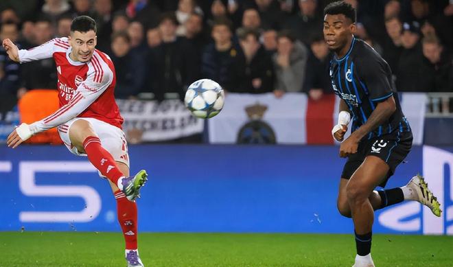 23 岁的马杜埃凯用一场双响,三场欧冠斩获3球,这位 5600 万英镑引进的边锋,终于在大赛舞台兑现潜力,成为阿森纳右路不可替代的尖刀。左路的马丁内利则延续火热状态,连续 5 场欧冠破门创造队史纪录。第 56 分钟内切横带后的弧线爆射,不仅是技术与力量的完美结合,更体现了他在战术体系中的牵制价值 —— 正是他吸引布鲁日两名防守球员的注意力,为队友创造了更多进攻空间。